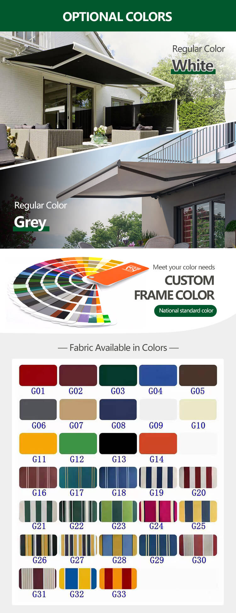 | Frame Color | Grey, White, Black, Customized |
