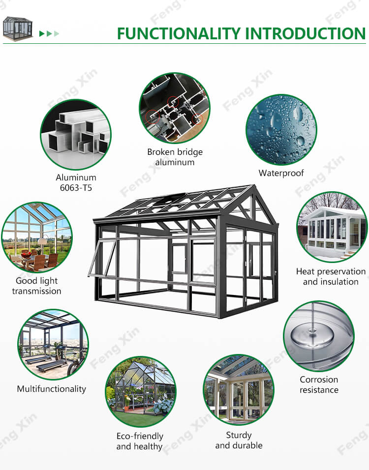 Customized High Quality Laminated Tempered Glass Free Standing Housed Gable Sunroom