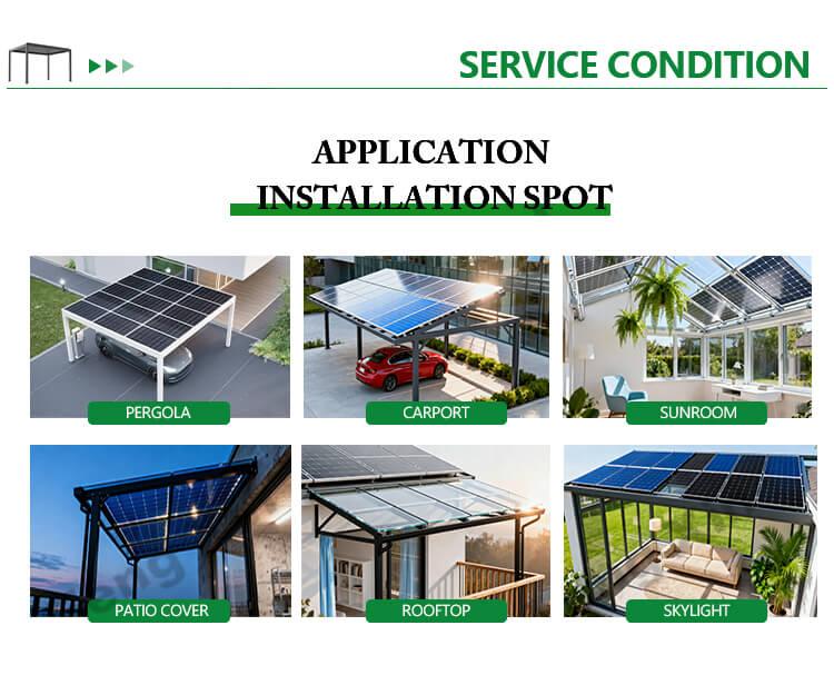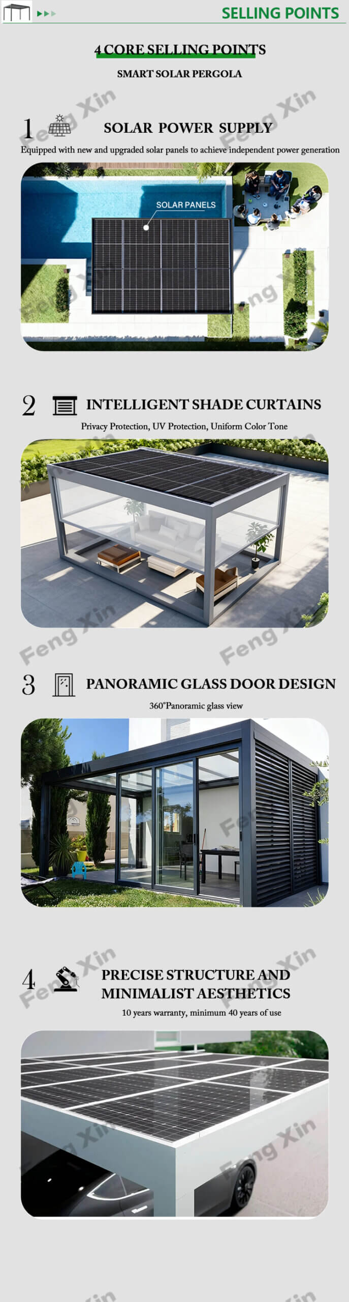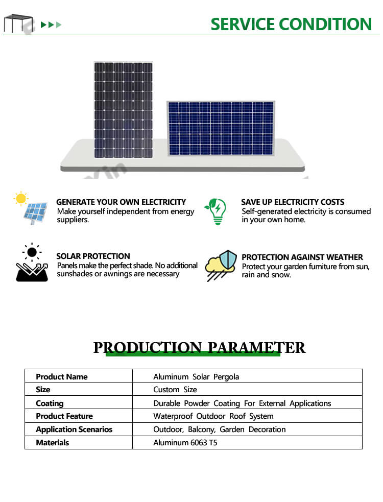 Factory Custom Aluminum Frame Solar Panel Pergola with Glass Sunroom & Patio Cover
