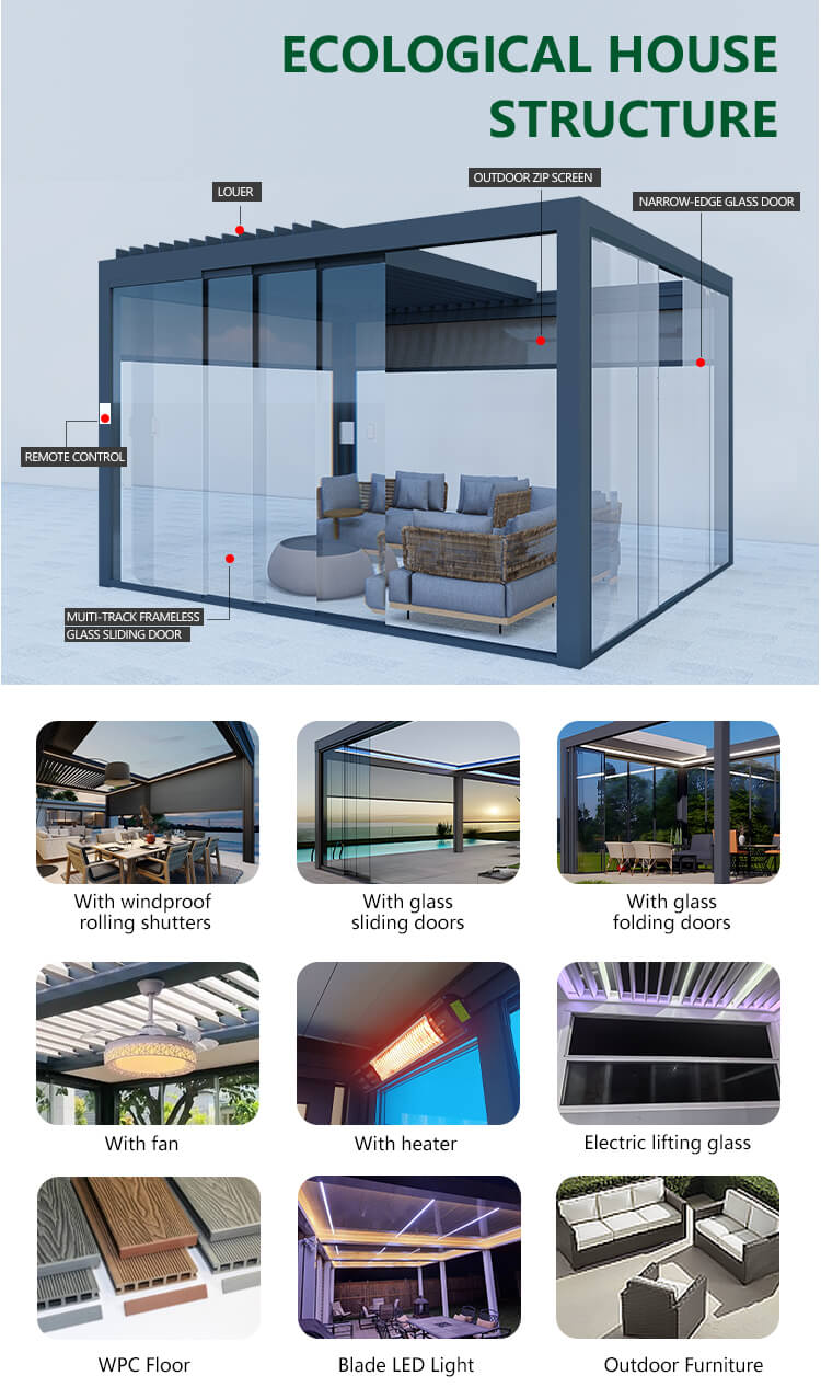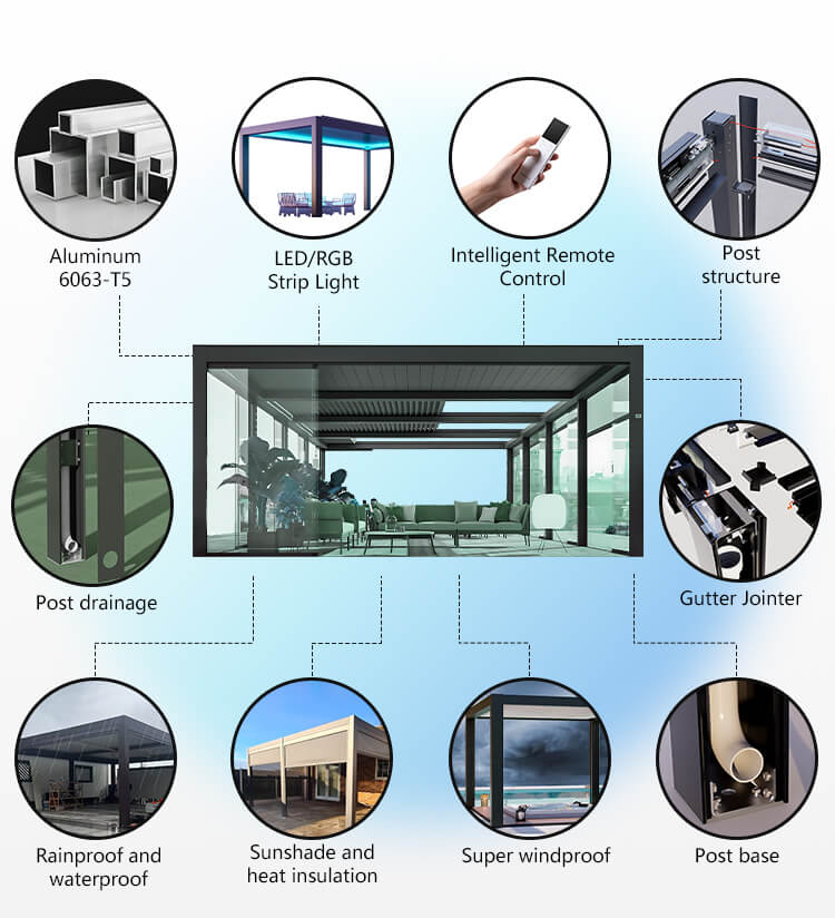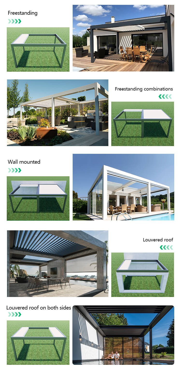 Freestanding Retractable Pergola Bioclimatic Aluminum Waterproof Louver Roof Electric