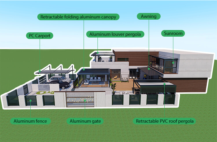 Aluminum Fence, Glass Door, WPC Decking, Zip Screen